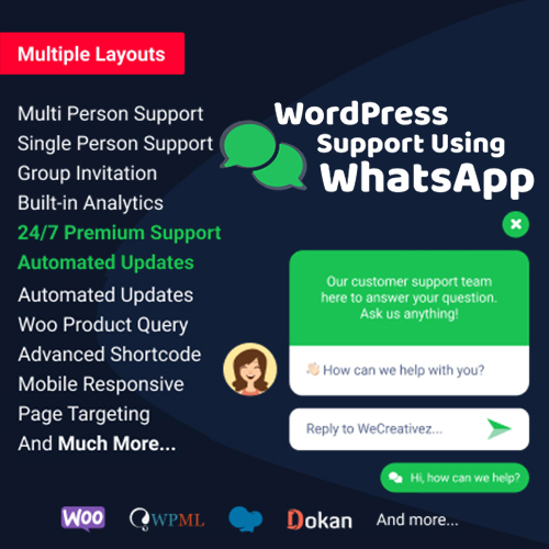 Más de mil millones de personas en más de 180 paÃses usan WordPress WhatsApp Support que proporciona una manera mejor y más fácil de comunicar a los visitantes y clientes directamente con su persona de soporte.